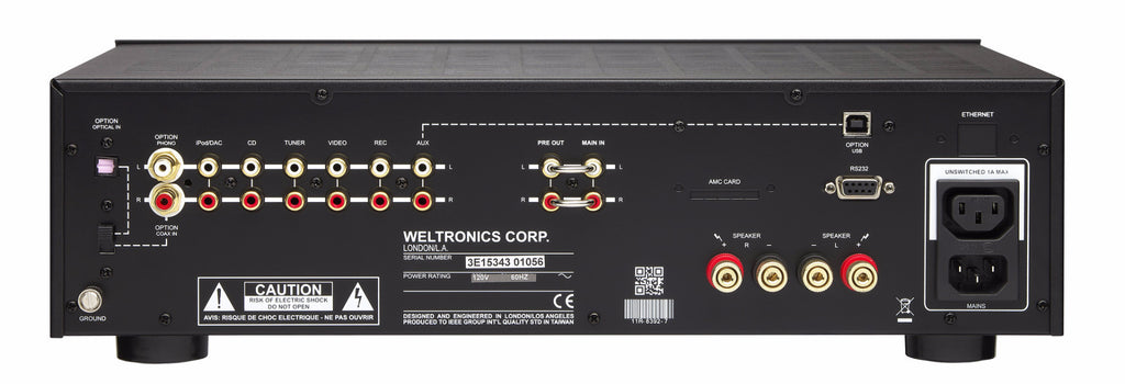 Integrated Amplifier, 150W x 2, pre-out/ main-in, RS232, Remote Control, Phono, Optical In, SPDIF Coaxial in, Options: USB, Ethernet